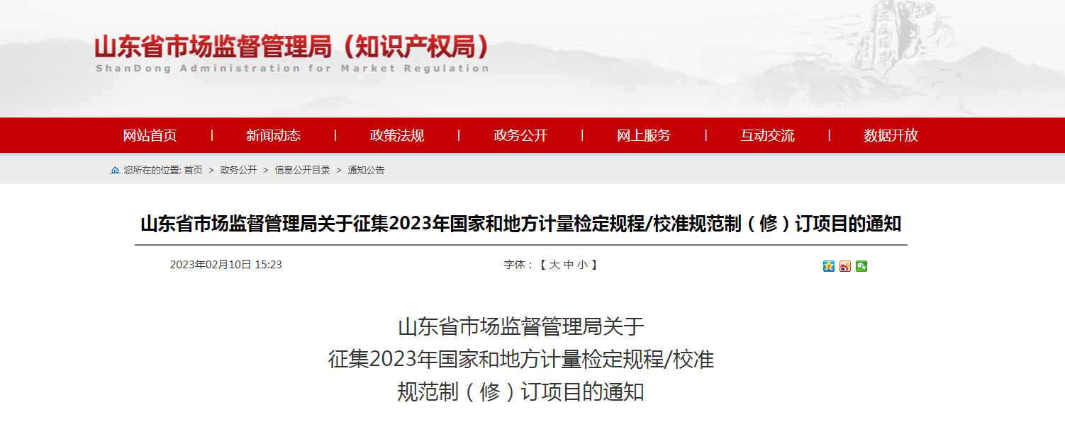 山东省市场监督管理局关于征集2023年国家和地方计量检定规程/校准规范制(修)订项目的通知